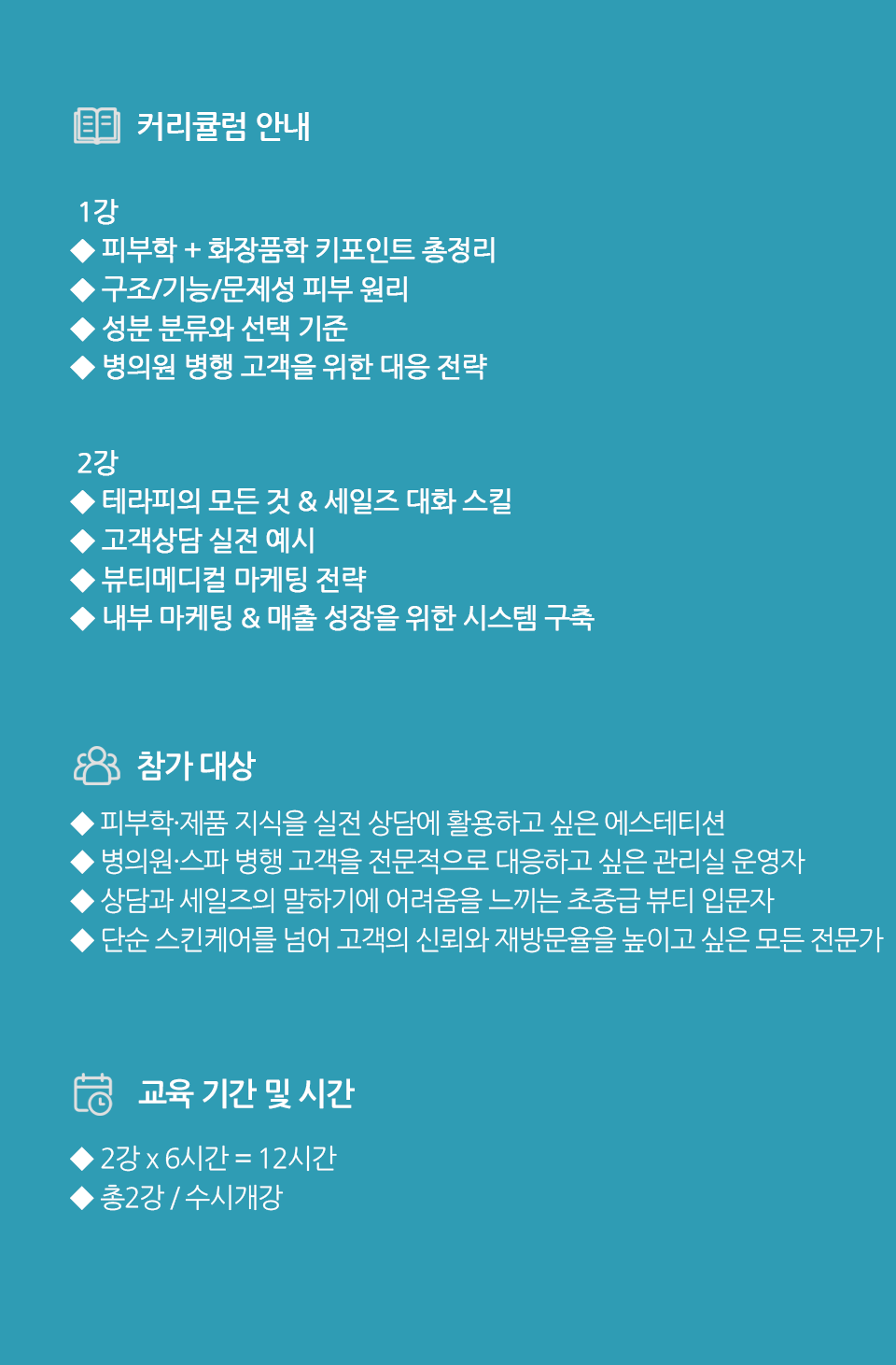 피부 이론, 화장품학, 상담·세일즈, 내부 마케팅까지