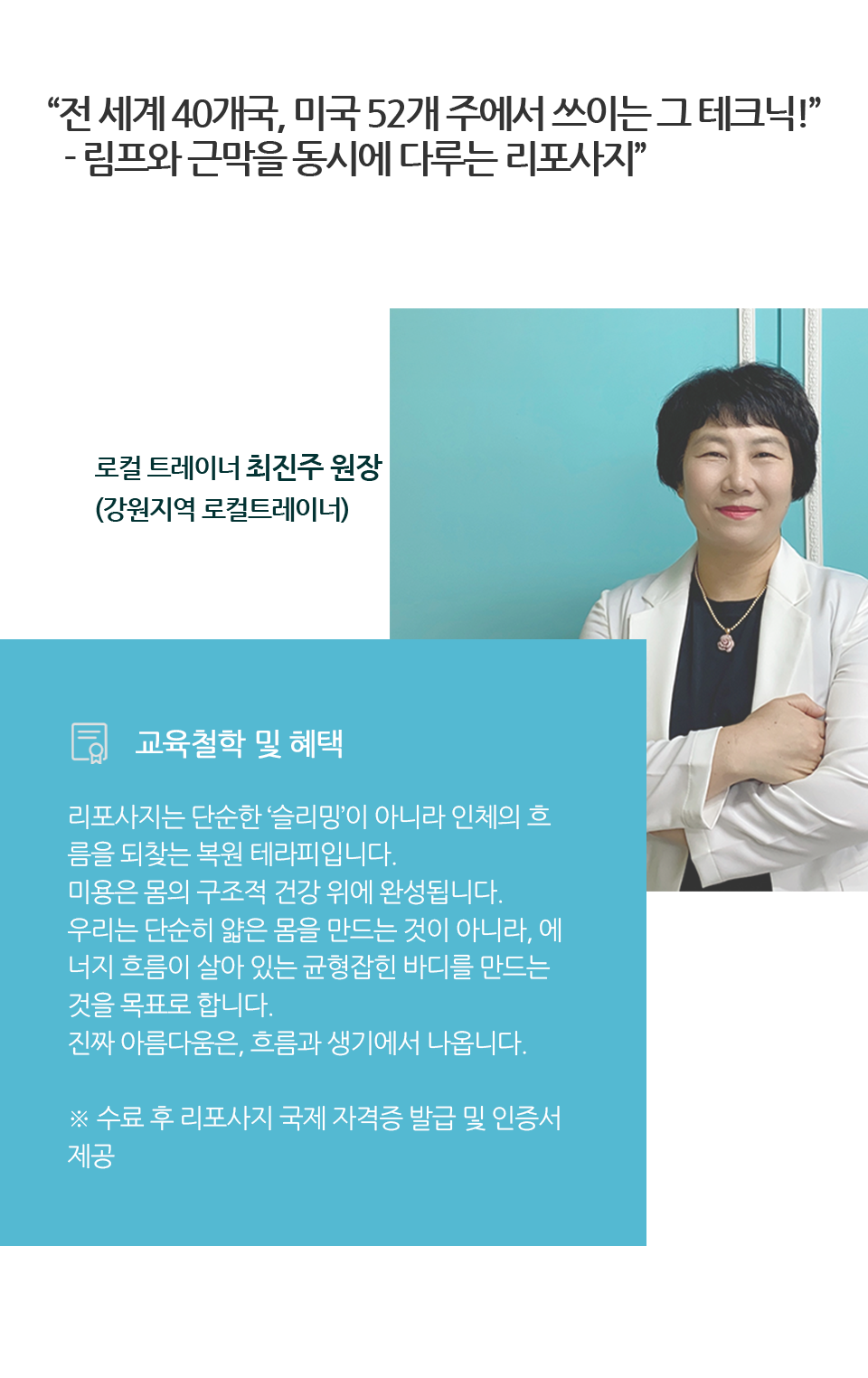 ✔ 국내 최초 림프 중심 체형관리 국제 인증 과정